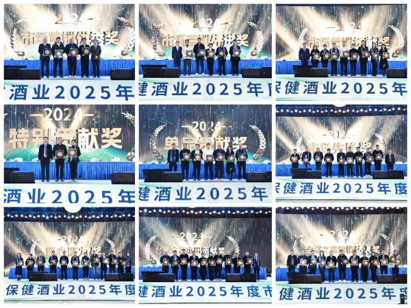 会议对荣获2024年保健酒业公司“市场营销优秀奖”“市场营销先进奖”“市场营销贡献奖”“特别贡献奖”“单品贡献奖”“市场先锋奖”“凝心聚力奖”“台源之星杰出贡献奖”“台源之星营销达人奖”的经销商进行了表彰,进一步立标杆、树典型,激发全体经销商的战斗力、执行力,推动保健酒业公司市场工作更上一层楼。