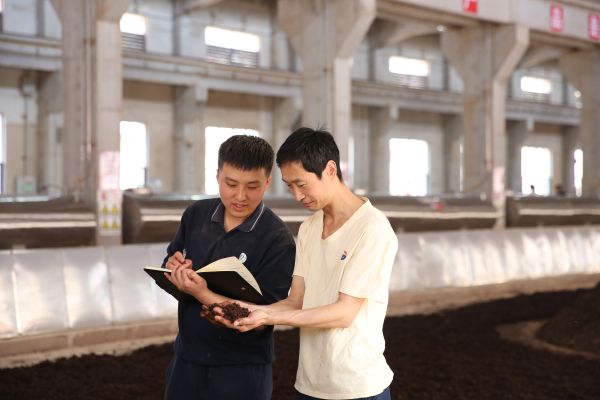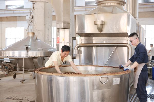 日复一日,这些点滴积累不仅提升了喻深玺的能力,更塑造了他在工作中的敏锐洞察力。早班时,蒸汽裹着酱香漫过车间的每道梁柱,喻深玺站在甑桶旁闭目吸气。这是他独有的“晨课”——用鼻子丈量空气中的微生物活跃度。“就像当年用耳朵捕捉边境的异响。”他说这话时,晨光正为他胸前的党员徽章镀上金边,与甑桶上升腾的彩虹光晕交织成美丽的图案。对此,徒弟贺先军也常常打趣道,“喻师的秒表比太阳起得早呢!”
