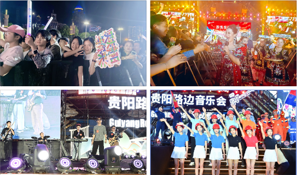 作为贵州文旅重要IP之一,贵阳路边音乐会自2023年以来已举办超200场,现场观众超180万人次,网络传播量超70亿次,更吸引了400多家境内外媒体报道。此次五一活动更首次与茅台王子酒联袂合作,以“致敬奋斗者”品牌精神为内核,通过沉浸式场景实现文化破圈。