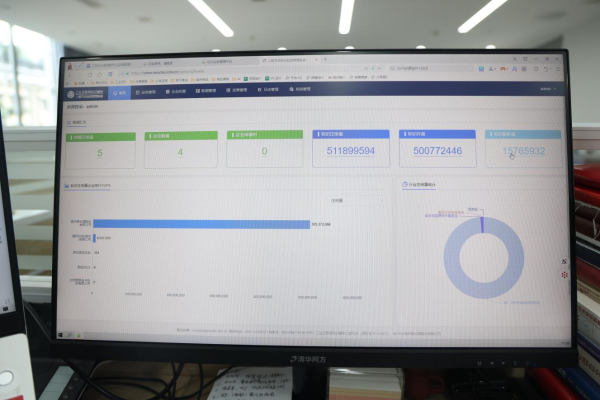屏幕上清楚地显示,工业互联网标识解析二级节点业务管理系统”已实现标识注册量达超5亿条,标识解析量达1500余万条。“二级节点就像酒行业的‘数字身份证’系统,每瓶酒的关键数据都能通过它实现互联互通。”赵琨介绍道。