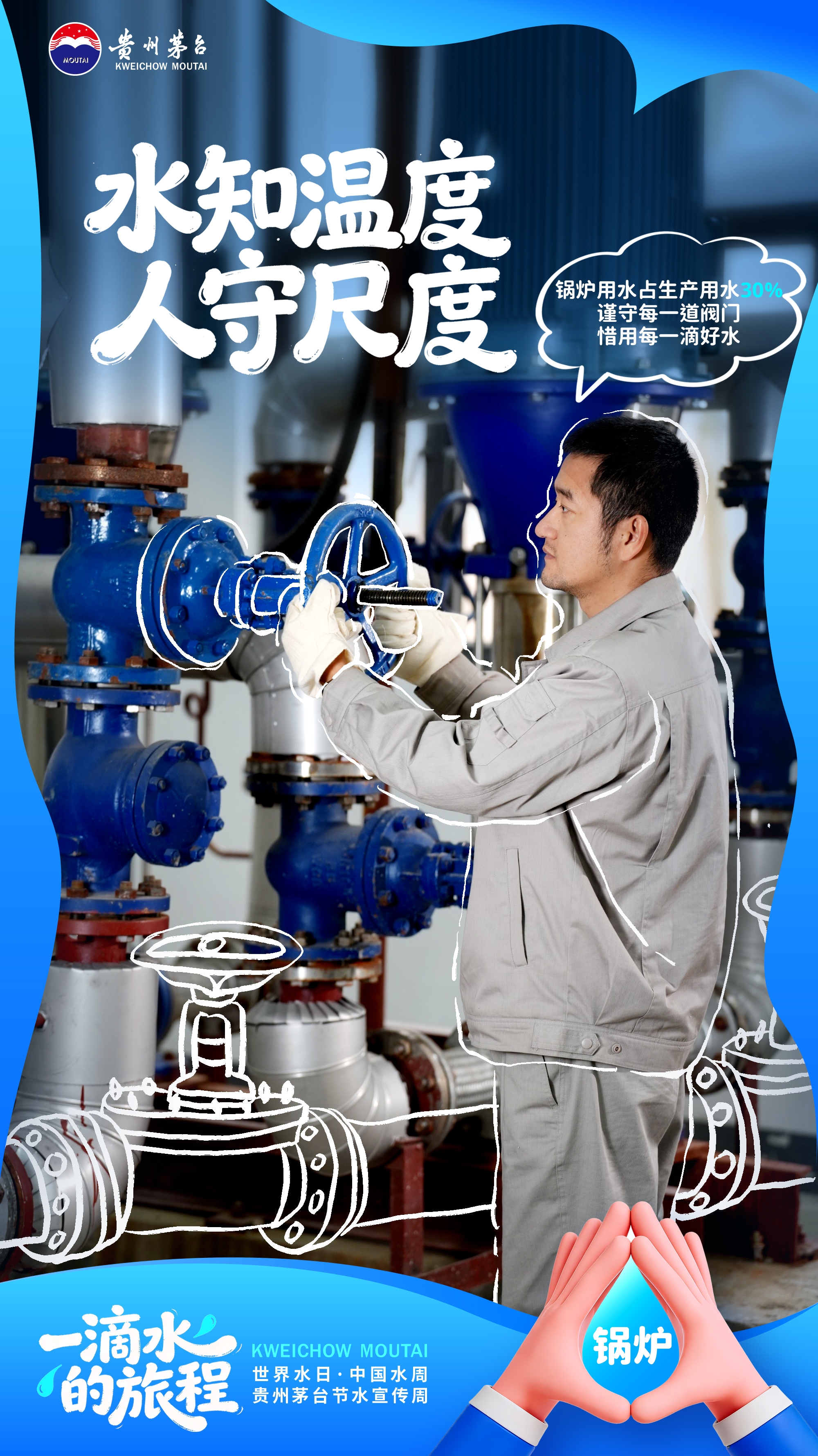 水是生命之源,也是茅台的根与魂。当水走完它的路,留在了酒里,也留在了人心里。“世界水日”“中国水周”,茅台人以实际行动诠释“节水优先、空间均衡、系统治理、两手发力”的治水思路,让每一滴水都物尽其用,让赤水河的清波永续流淌。
